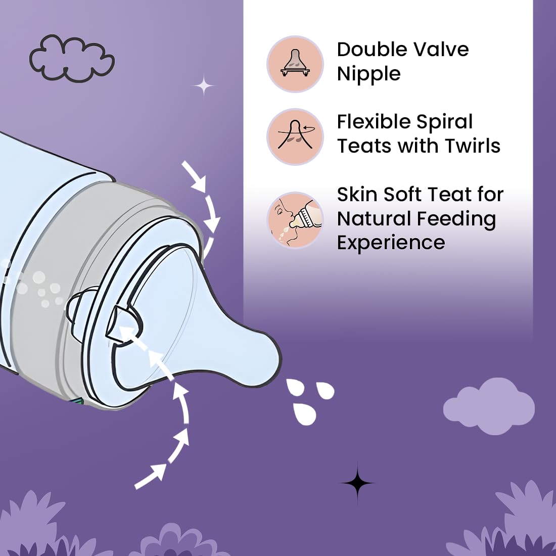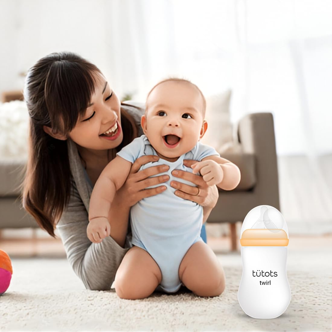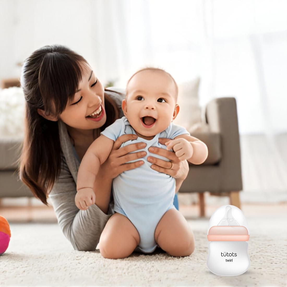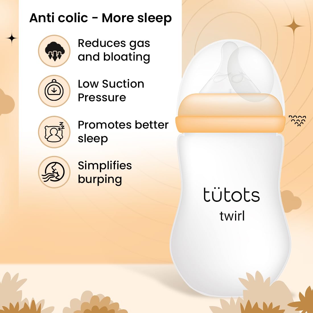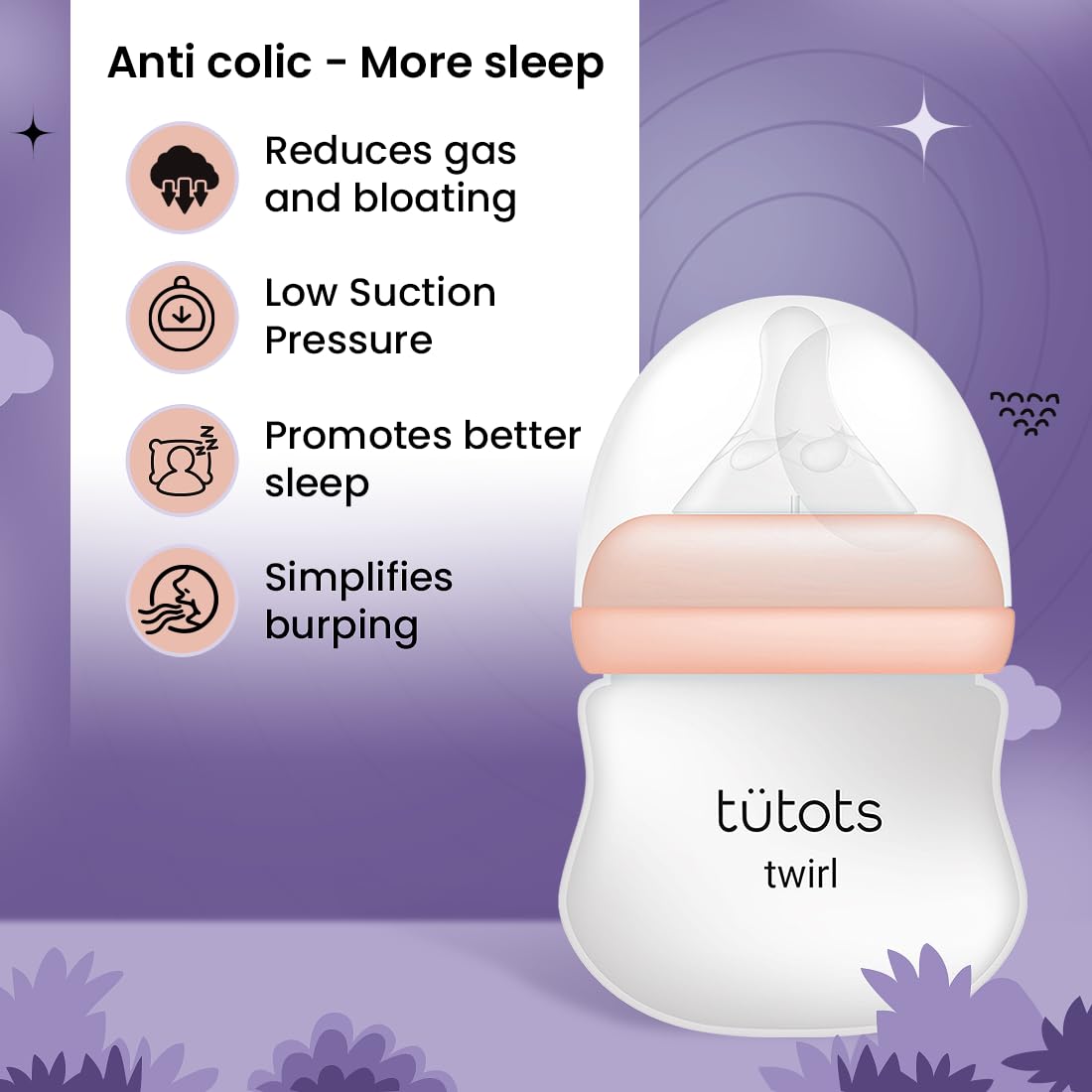 tütots Baby Feeding Bottle – 125ml Twirl Series, Anti-Colic Wide Neck, BPA-Free with Turbo Vent Nipple