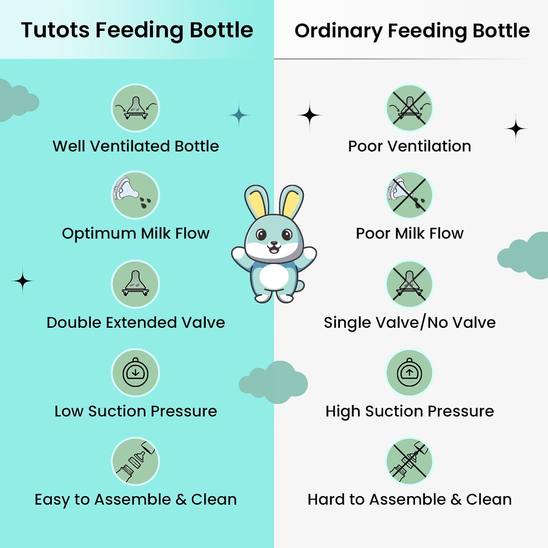- Anti-Colic Design - Our tütots Feeding Baby Bottle features an advanced anti-colic system that reduces air intake, ensuring a comfortable feeding experience for your baby and minimizing the risk of colic.