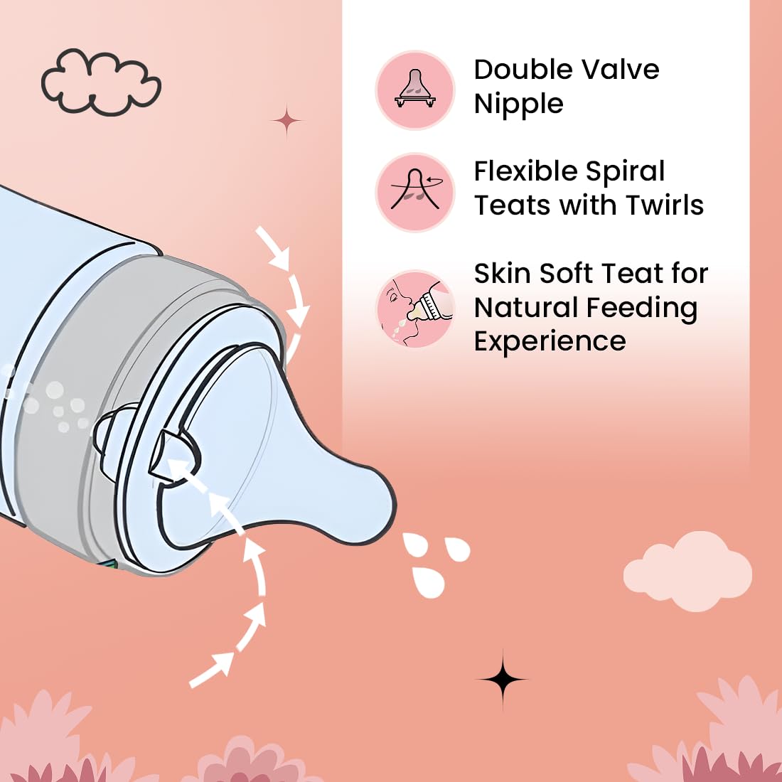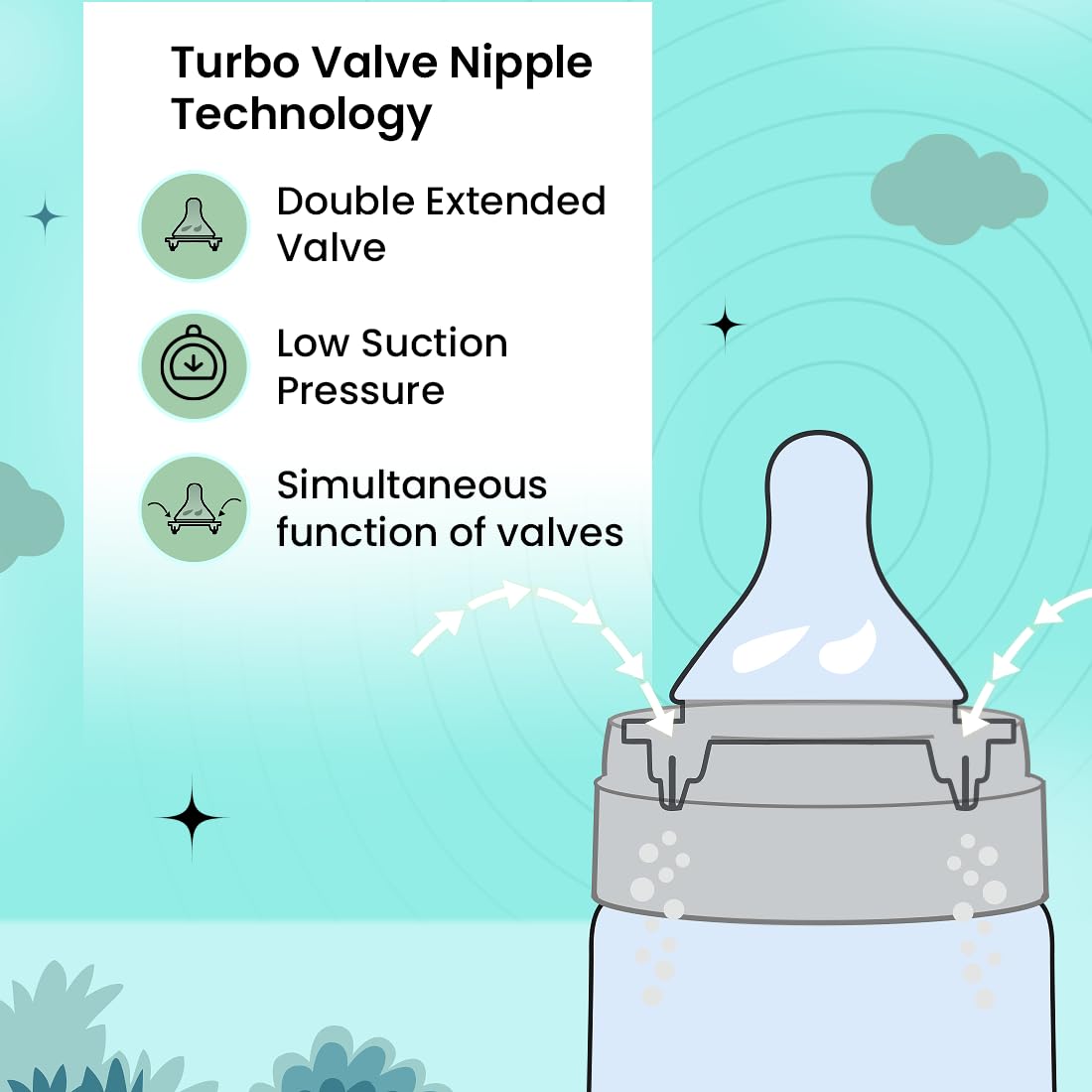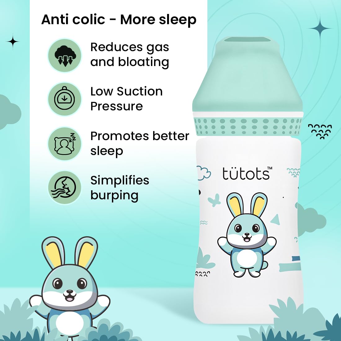 tütots Baby Feeding Bottle – 250ml, Anti-Colic Wide Neck, BPA-Free with Turbo Vent Nipple
