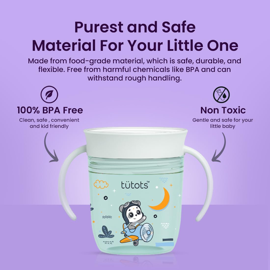 tuetots 360° Soft Spout Baby Trainer Sipper, 210ml, Dual Handle Leakproof & spillproof Sippy Cup for Babies/Toddlers/Kids, Easy-Grip Handles, BPA-Free, Ergonomic Design | Plane Design (Green)