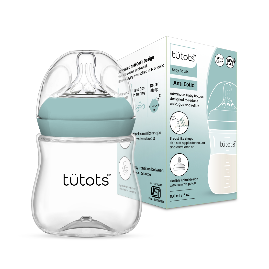 • Anti-Colic Design - Our tütots Feeding Baby Bottle features an advanced anti-colic system that reduces air intake, ensuring a comfortable feeding experience for your baby and minimizing the risk of colic.