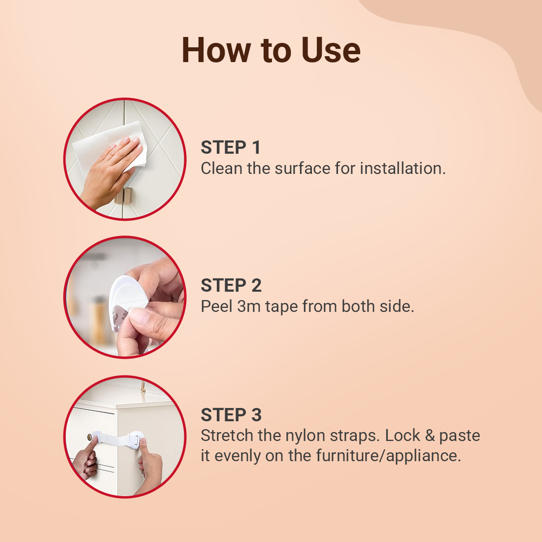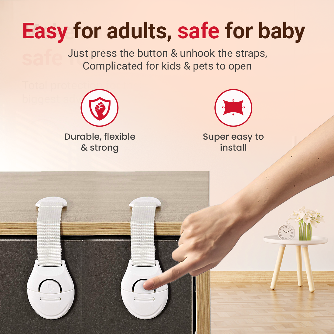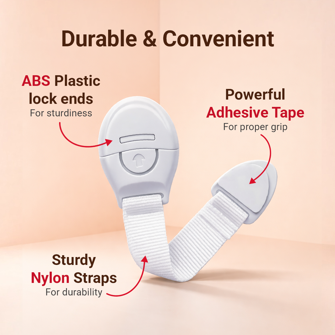 tutots Kids Safety Cabinet Door Locks, Cabinet Lock With Self Adhesive - 10 Pcs